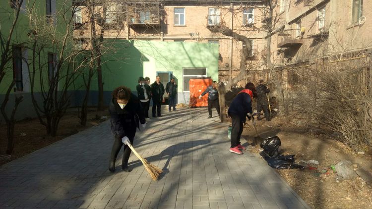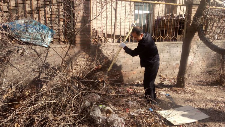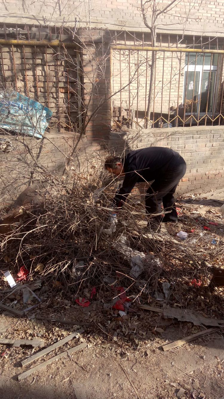 看安馨養(yǎng)老服務(wù)中心后院里參加清掃衛(wèi)生的青年團(tuán)員志愿?jìng)兡弥灾恪㈣F鍬、鋸等用具。開始了緊張的忙碌,鋸枯樹枝的,清掃院落的,清倒垃圾的,大家分工合作,經(jīng)過了一上午的清掃整理,整個(gè)院落更加的干凈整潔了。